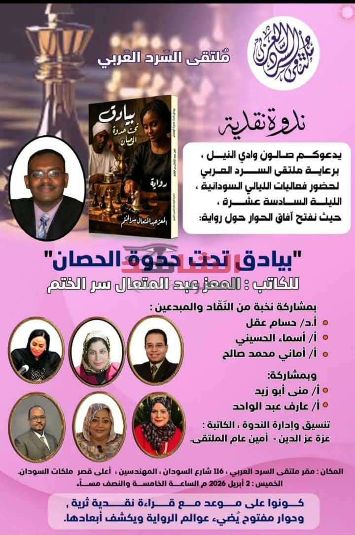 كانت هذه إطلالة سريعة خلال جلستى مع الكاتب والروائى السودانى ” المعز عبد المتعال سر الختم ” على وعد بتغطية كاملة لمناقشة روايته الجديدة عبر منصة السرد العربى وذلك يوم الخميس القادم 2 أبريل