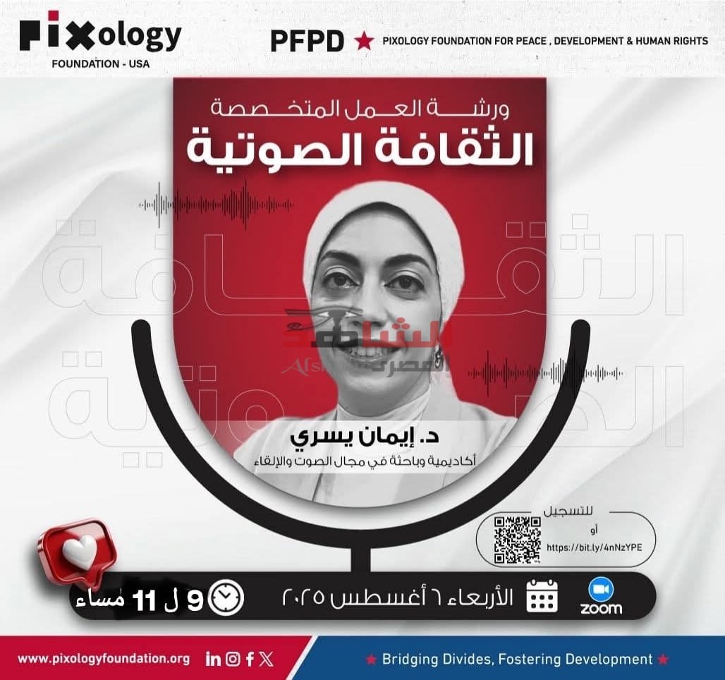 أعلنت مؤسسة بيكسولوجي للسلام والتنمية وحقوق الإنسان، ضمن برنامج SkillBridge، الذي يهدف إلى تمكين الأفراد وبناء قدراتهم في المجالات التي تُحدث فارقًا حقيقيًا في حياتهم، عن ورشة الثقافة الصوتية وأهمية التدريب الصوتي.
