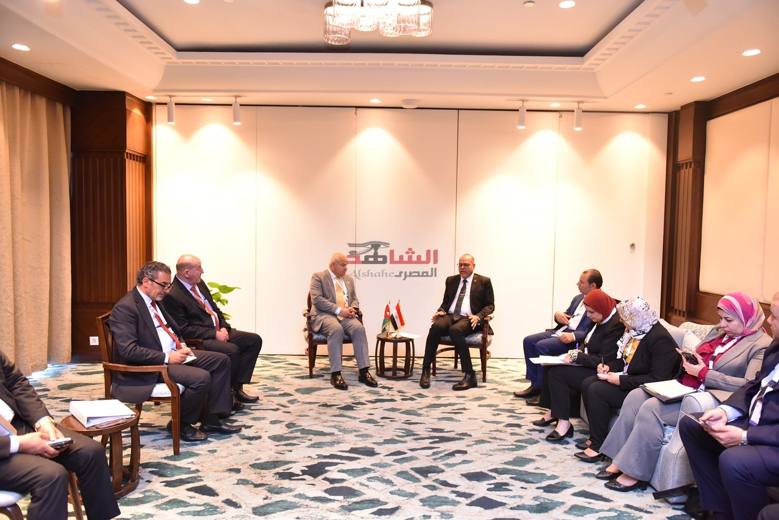 على هامش فعاليات مؤتمر العمل العربي المنعقد في القاهرة ،التقى وزير العمل السيد /محمد جبران ، اليوم السبت ،مع نظيره الأردني خالد البكار للتباحث في العديد من الملفات المشتركة..و أكد الوزيران على عمق العلاقات التاريخية التي تربط بين البلدين وفي كافة المجالات..وتناقشا الوزيران في تفعيل سبل التعاون المشترك في مجالات التدريب المهني من أجل التشغيل، والحفاظ على حقوق وواجبات العمال المصريين ،وأصحاب الأعمال في المملكة الأردنية الهاشمية ، في نفس الوقت..