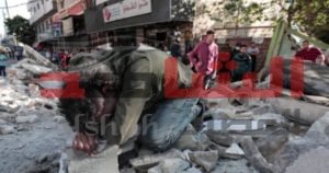 اسمعوني با شعوبا تملأُ الأرضَ ….اسمعوني يا من تحتوي صدورَكم …….قلوبا تعالَوا إلى حيثُ أنا ……..فانقذوني أناديكم ……….من تحتِ ركامِ بيتي وتلك يداي أُحرِّكُها …..فلا تَدَعوني ساقي يُتِرَت ………..وعيني فُقِئَت فكونوا يا بني البشرِ ……..عيوني دخانٌ أسودٌ …………يُلهِبُ رأسي وحُطامٌ خرسانيٌ لعينٌ …….يَعلوني ما بقي من يدي اليمنى …يشيرُ لكم بعلامةِ النصرِ ……..